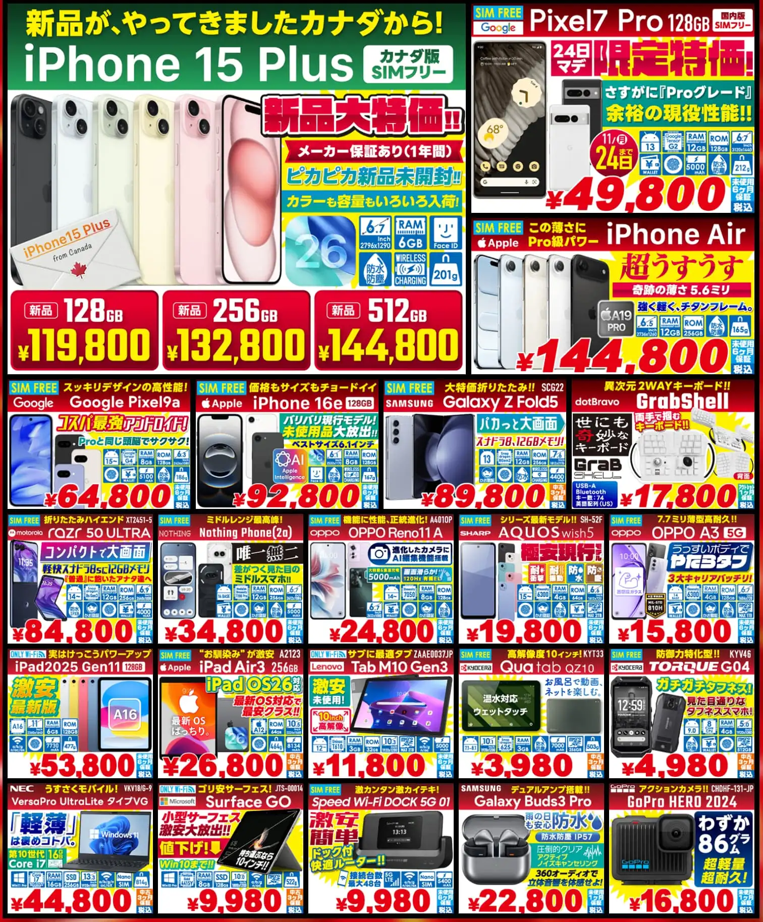 中古スマホ・タブレット販売の「イオシス」は、2025年11月22日から24日までの3日間 ブラックフライデーに合わせた「イオシス 勤労大感謝祭セール」を開催します。スマホやタブレット、パソコンなどの中古品や未使用品など販売されます。