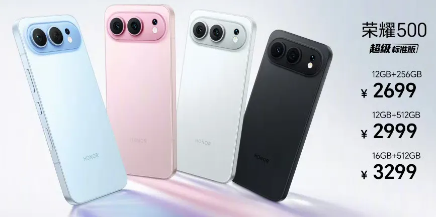 HONOR 500は、Snapdragon 8s Gen 4と8000mAhバッテリーを搭載したハイスペックスマートフォン。120Hz AMOLED、OIS対応デュアルカメラ、防水防塵(P69K)、80W急速充電。中国で発売、価格は2699CNY(約6万円)から。