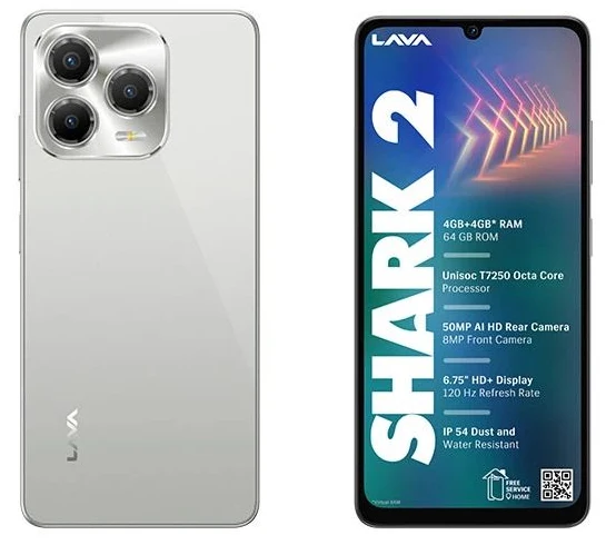 Lava Shark 2 は、6.75インチHD+ディスプレイ、UNISOC T615、4GB RAM、64GBストレージ、5000万画素トリプルカメラ、5000mAhバッテリーを備えた4G対応スマートフォン。防水防塵(IP54)や18W充電に対応。インドで発売。