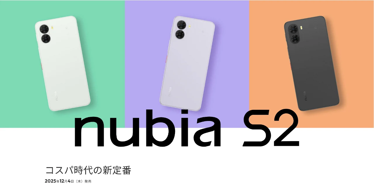 ワイモバイルはは2025年12月2日、ZTE nubia(ヌビア)ブランドで、6.7インチディスプレイ5G対応Androidスマートフォン「nubia S2e (ZTE A507ZT)ヌビア・エス・ツー・イー」を発表しました。