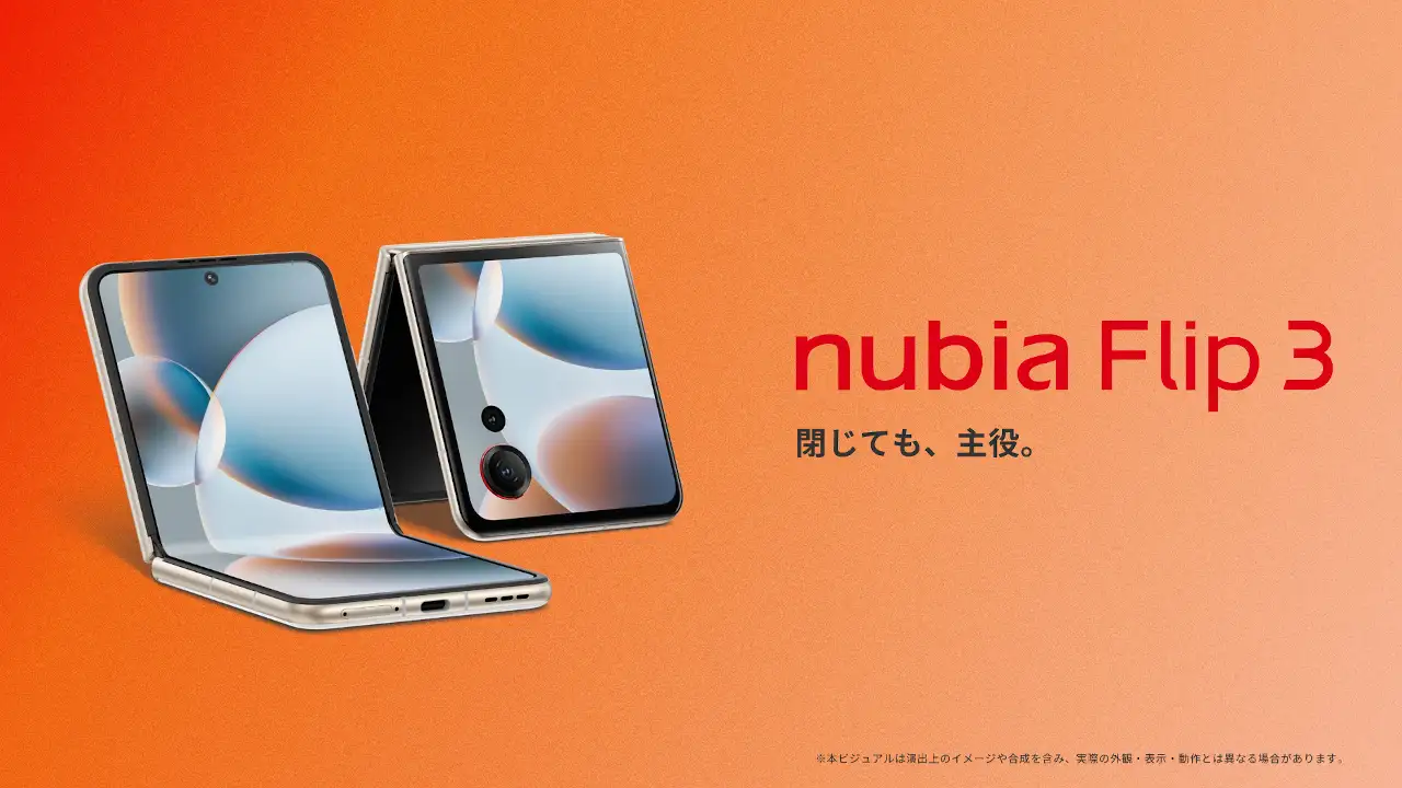 ZTEジャパンは2025年12月2日、nubia(ヌビア)ブランドで折りたたみ式のフォルダブル5Gスマートフォン「ZTE nubia Flip 3 (A505ZT) ヌビア・フリップ・スリー」をワイモバイルから発売します。