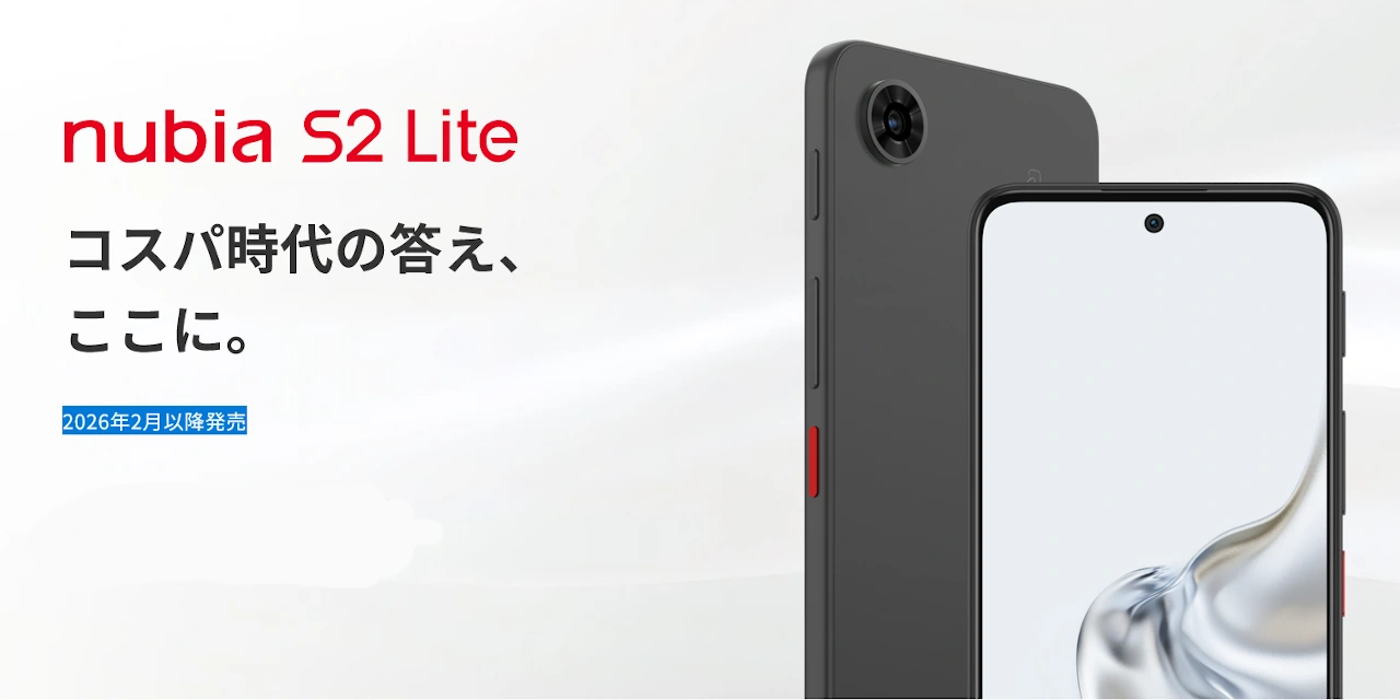 ZTEジャパンは2025年12月2日、6.7インチディスプレイの5G対応Androidスマートフォン「nubia S2 Lite」を発表しました。