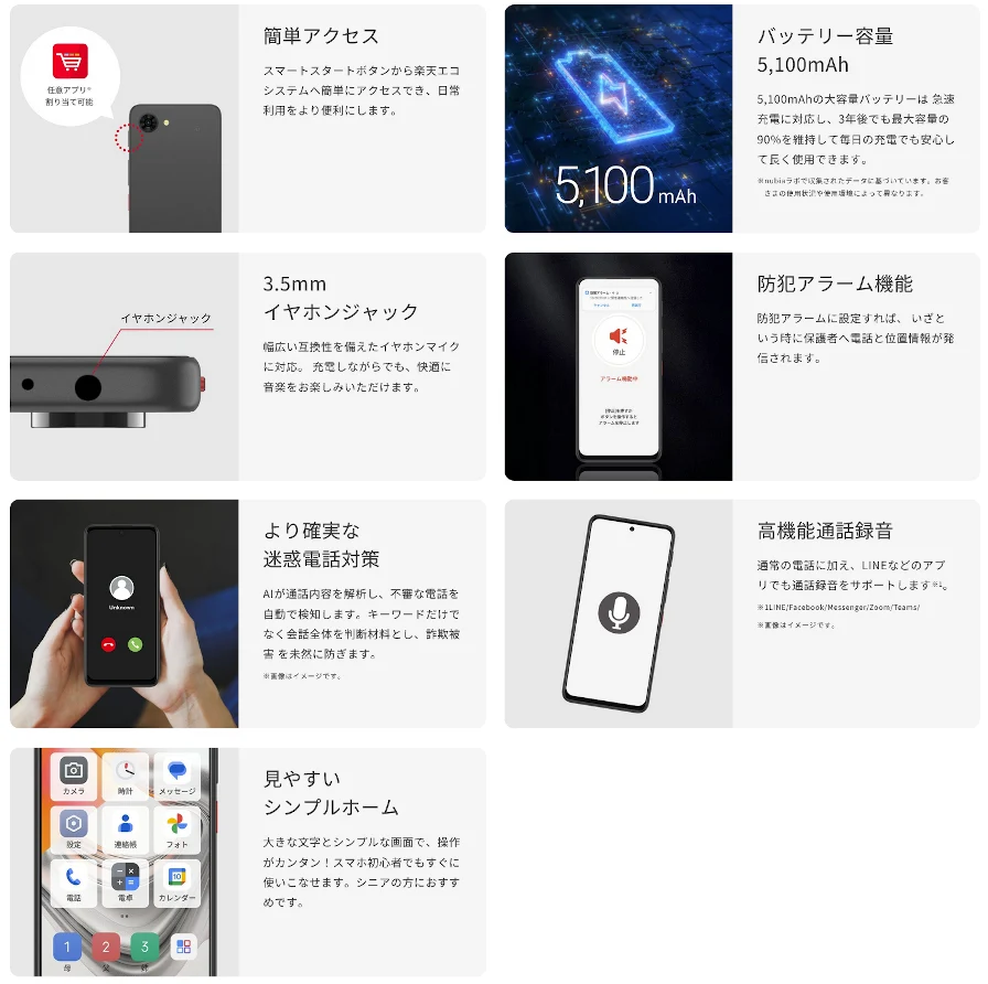 nubia S2 Lite は、6.7インチFHD+(2400×1080)ディスプレイ、CPUはUNISOC T8100 2.2GHz オクタコア(T760)、RAM4GB、ストレージ容量は64GB、メインカメラは5000万画素カメラ搭載のエントリークラスのアンドロイドスマートフォンです。