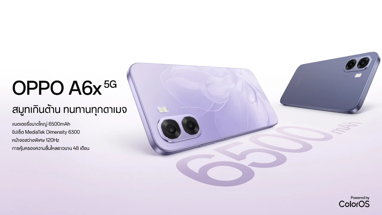 OPPO A6x 5G (CPH2783) は、MediaTek Dimensity 6300、6.75インチHD+・120Hzディスプレイ、5000万画素デュアルカメラ、6500mAhバッテリーを搭載した5Gスマートフォンです。海外で2025年12月に発売。