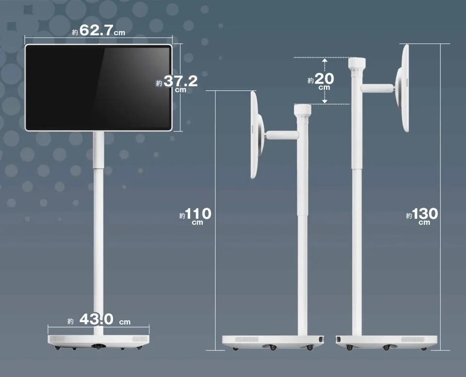 タッチ操作可能な27インチ4KモニターはAndroid OSによりタブレットのような操作が可能、バッテリー内蔵キャスター付きで高さ調整と角度調節が可能、ミッドレンジ・ウーファー・ツイーターをそれぞれ独立で搭載した合計36.6Wの高出力スピーカーも搭載。画面裏にはHDMI端子・USB Type-C・USB Type-Aがあります。