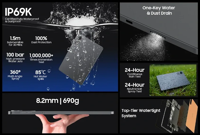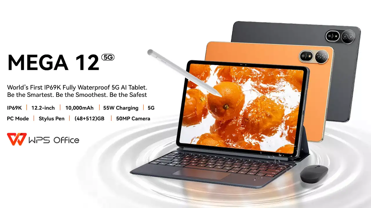 Blackview MEGA 12 は、Dimensity 7200と12.2インチ高解像度120Hzディスプレイを搭載した5G対応Androidタブレット。防水防塵(IP69K)、クアッドスピーカー、55W急速充電対応10000mAhバッテリー。海外で発売予定。