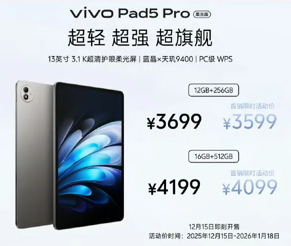 中国のメーカーvivoは2025年12月15日、ペーパーライクな13型ディスプレイのハイスペックAndroidタブレット「vivo Pad5 Pro Soft Light Version(柔光版)」を中国で発表しました。