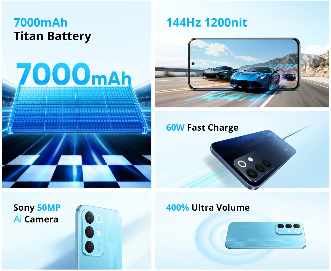 カラーはFlash BlueとNitro Blueの2色。インドで2025年12月に発売、価格はRAM6GB/128GBモデルが13,999INR(約2.4万円)、RAM6GB/256GBモデルが15,499INR(約2.7万円)となっています。