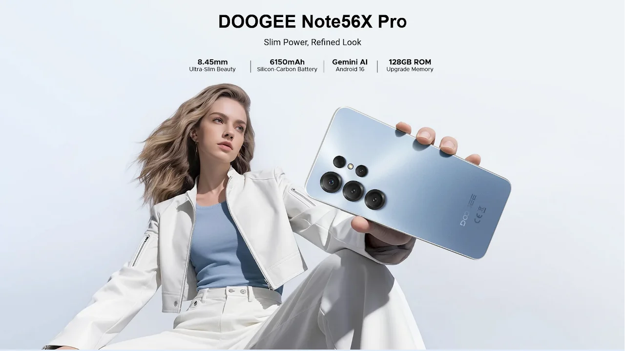 DOOGEE Note56X Pro は、6.56インチ90HzディスプレイとUNISOC T7225、6150mAh大容量バッテリーを搭載したエントリー向け4Gスマートフォン。2025年12月に海外および日本のECサイトで発売、価格は146.99ドル。