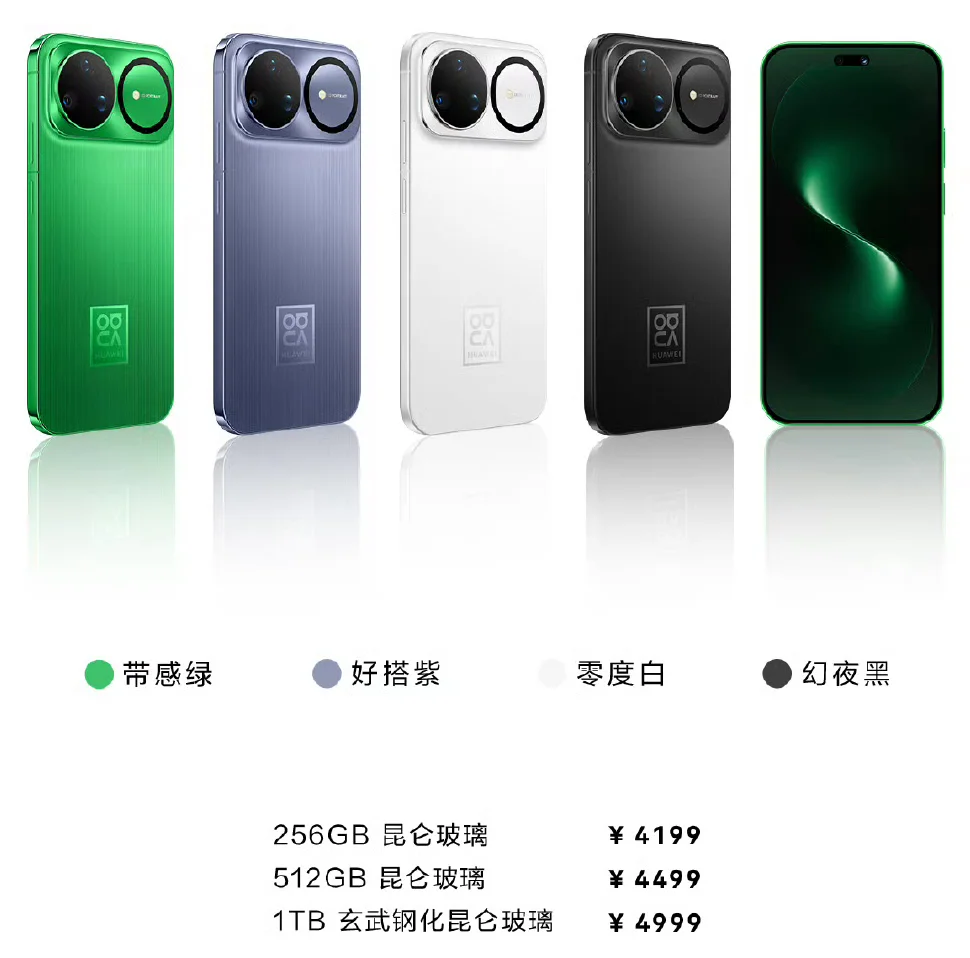 カラーはグリーン、ブラック、ホワイト、パープルの4色です。中国で2025年12月に発売、価格は256GBモデルが4199CNY(約9.4万円)、RAM512GBモデルが4499CNY(約10.1万円)、1TBモデルが4999CNY(約11.2万円)となっています。