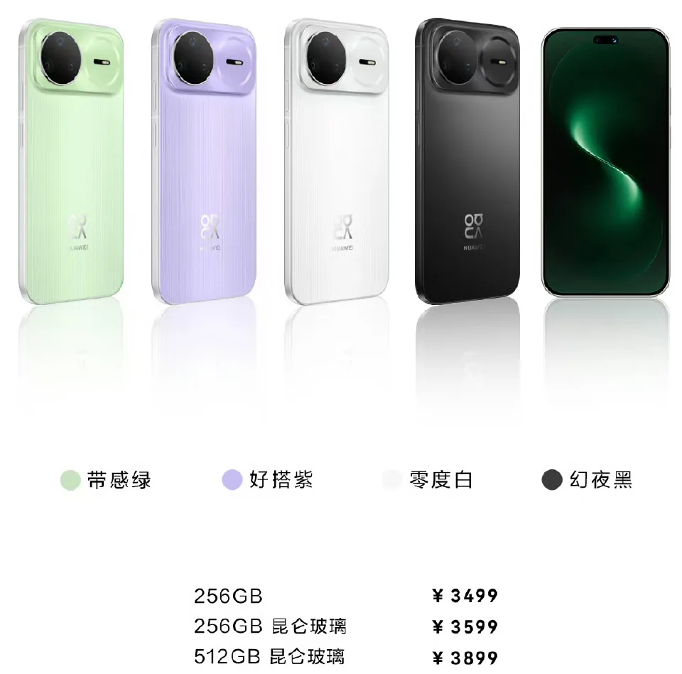 カラーはグリーン、ブラック、ホワイト、パープルの4色です。中国で2025年12月に発売、価格は256GBモデルが3499CNY(約7.9万円)、Kunlun Glass 256GBモデルが3599CNY(約8.1万円)、Kunlun Glass 512GBモデルが3899CNY(約8.8万円)となっています。