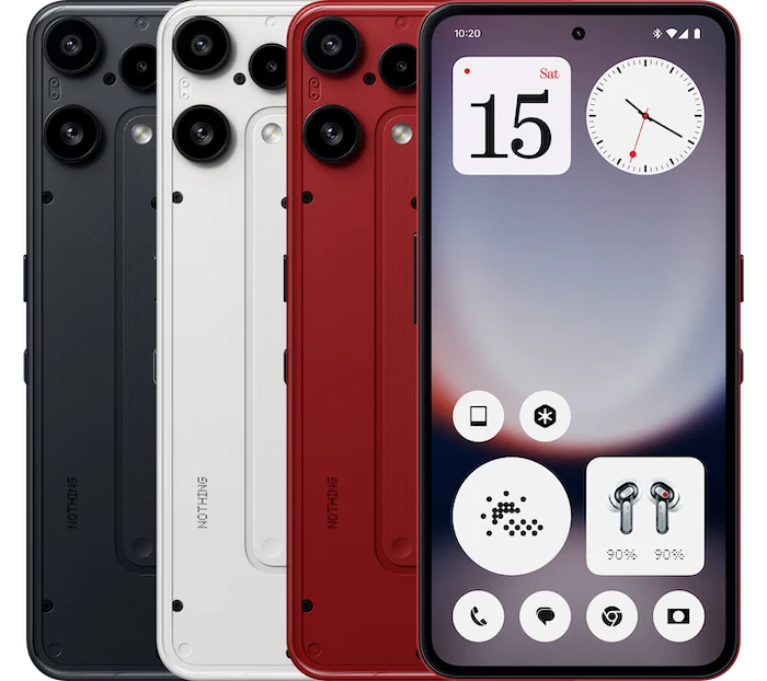 カラーはレッド(楽天モバイル限定)、ホワイト、ブラックの3色。Nothing公式サイトと楽天モバイルで2026年1月15日に発売、公式サイトでの価格はRAM8GB/128GB 42,800円、楽天モバイルでの価格はRAM8GB/128GB 32,890円となっています。