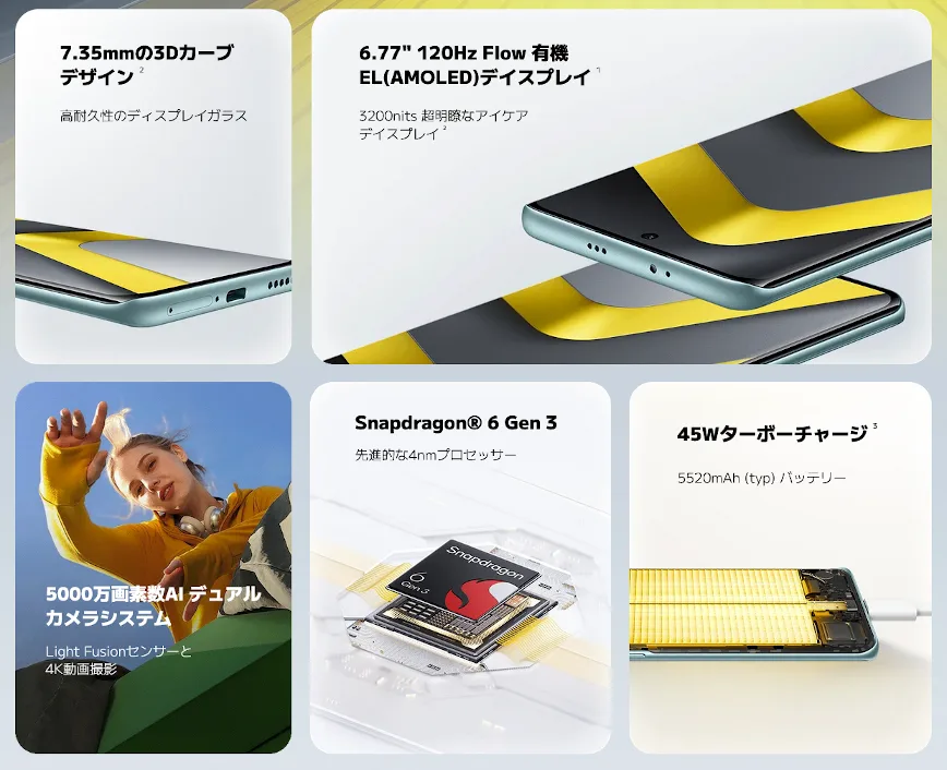 CPU : Snapdragon 6 Gen 3 SM6475-AB 2.4GHz オクタコア