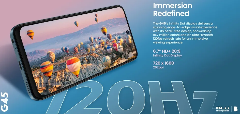 BLU G45 は、6.7インチ120HzディスプレイとUNISOC T7250を搭載したエントリーAndroidスマートフォンで、5000mAhバッテリー搭載です。アメリカで発売。