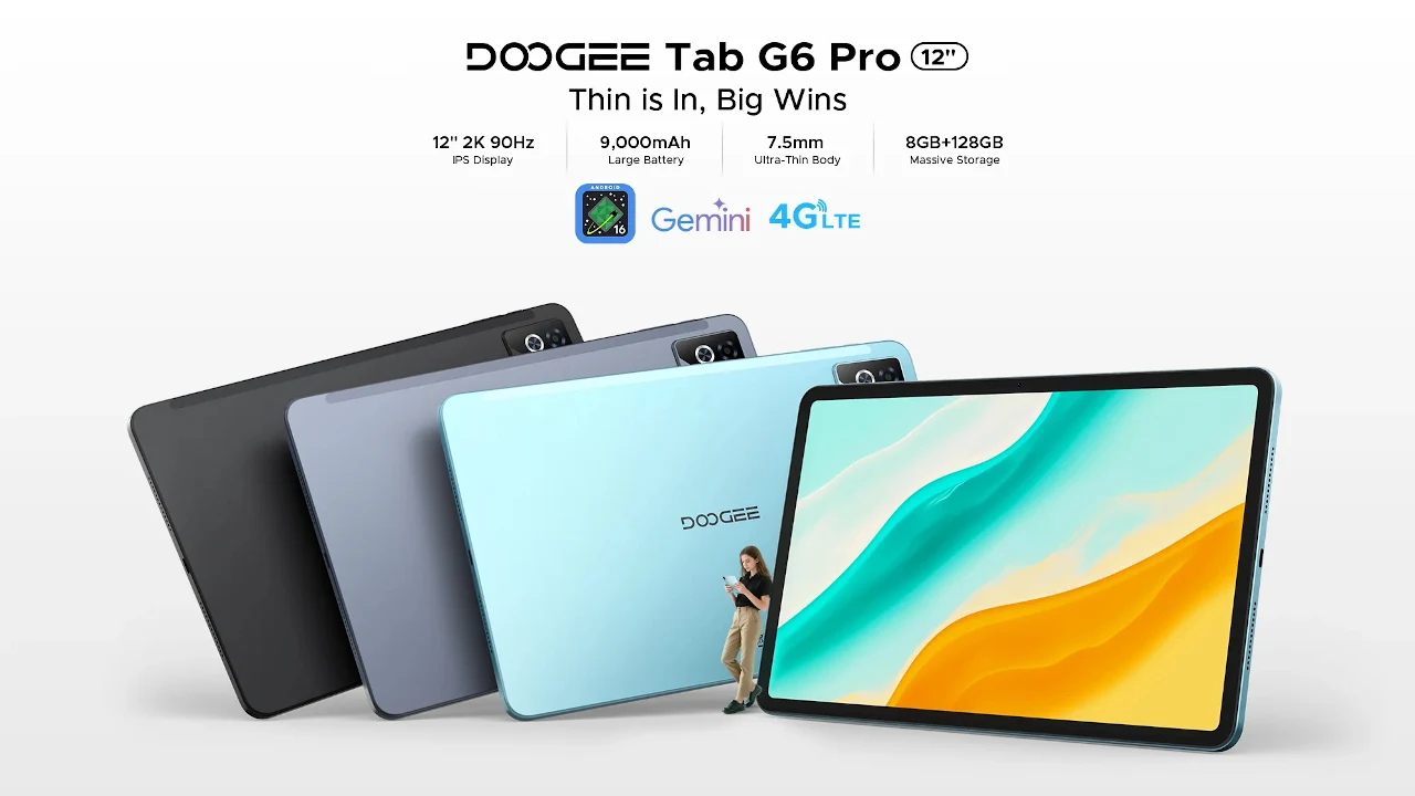 DOOGEE Tab G6 Pro は、Helio G100や90Hz対応12インチディスプレイ、9000mAhバッテリーを搭載したAndroidタブレット。4G LTE・デュアルスピーカー・顔認証にも対応。2026年1月発売。