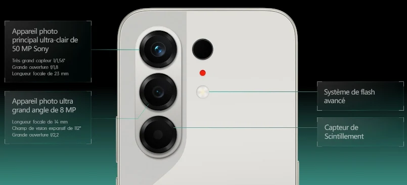 メインカメラ : 5000万画素(メイン 23mm LYT-700C 1/1.56 F1.9 OIS)+800万画素(広角 14mm F2.2)デュアルカメラ