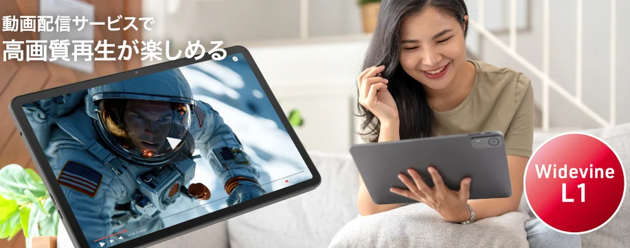 2k高解像度の大型ディスプレイが特長のWiFiタブレットです。OSはAndroid 15、Widevine L1対応、接続端子はUSB Type-C、イヤホン端子はありです。