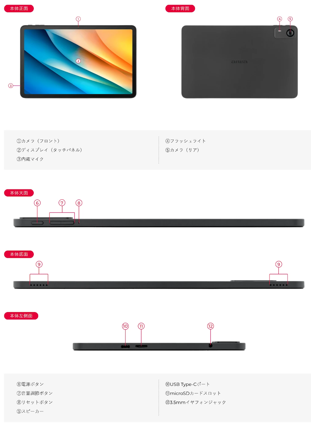 アイワマーケティングジャパン 公式サイト(aiwa tab AS12 製品ページ)