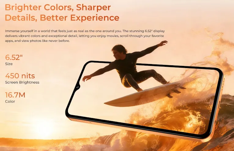 OUKITEL C17 は、6.52インチ(1200×540)のディスプレイ、CPUにUNISOC Tiger T310 2.0GHz クアッドコア、RAM4GB、ストレージ容量は128GB、メインカメラは1300万画素カメラ搭載のエントリークラスのアンドロイドスマートフォンとなっています。