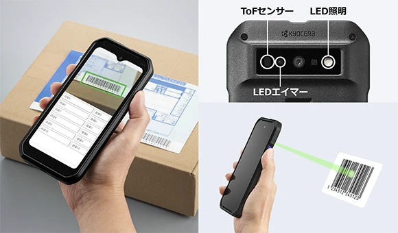 高速・高精度※1なバーコード読み取りライブラリに加え、暗所でのスキャンを補助する高輝度LED照明とToFセンサー、狙ったコードを確実に捉えるLEDエイマーを搭載。倉庫の棚奥や薄暗い場所でも、スムーズで正確な読取り作業を可能にします。