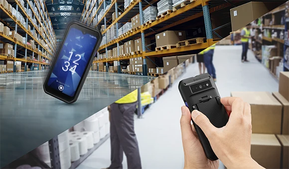 920MHz帯の周波数を利用する通信手段のひとつ「Wi-Fi HaLow」にスマートフォンとして初めて対応しました。従来のWi-Fiと比較して長距離(最大半径約1km)、広範囲の通信が可能で、遮蔽物にも強いという特長があります。これにより、携帯電話の電波が届きにくく、かつ従来のWi-Fi環境が構築しにくい広大な倉庫、建物の奥まった場所などでも、端末間同士での通信や音声通話(PTT)などのコミュニケーションを実現します。高性能バーコードリーダー機能で読取り作業を効率化