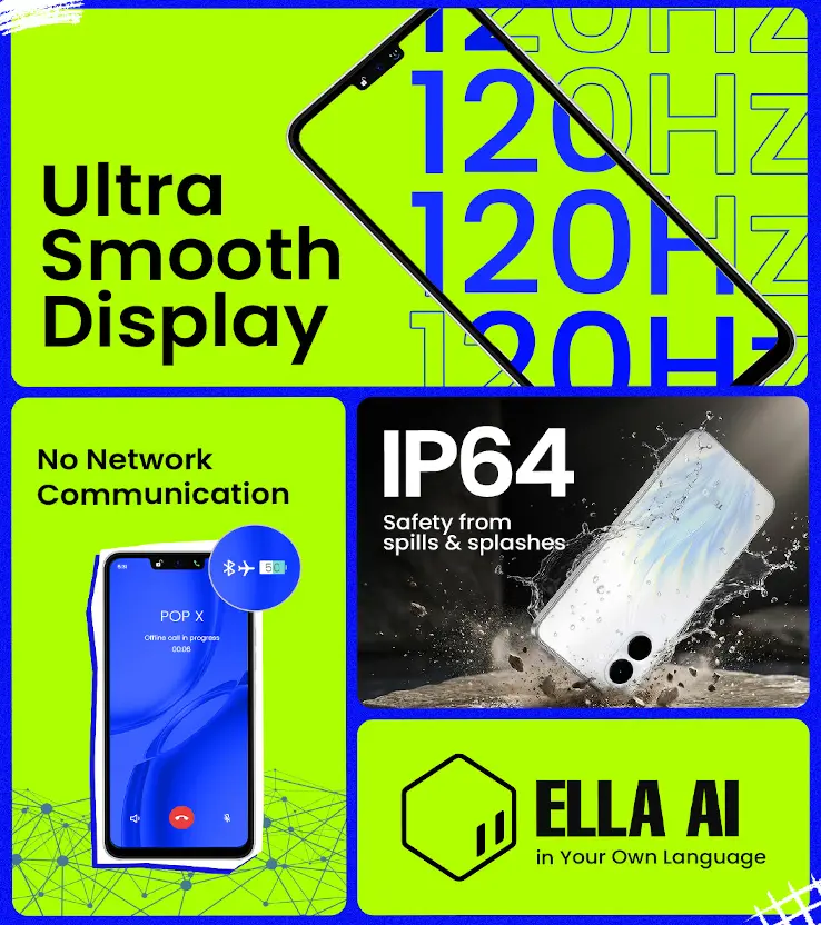 TECNO POP Xは、UNISOC T7250搭載の6.75インチHD+(120Hz)エントリースマートフォン。1300万画素カメラ、5000mAhバッテリー、防水防塵対応。2026年3月にインドで発売、価格は8499INR(約1.5万円)。