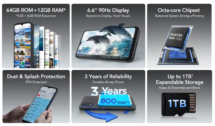 リフレッシュレート90Hzのディスプレイや防水防塵対応などが特徴の廉価モデルです。OSはAndroid 16、生体認証は指紋認証センサーと顔認証に対応、イヤホン端子はあり、接続端子はUSB Type-Cです。