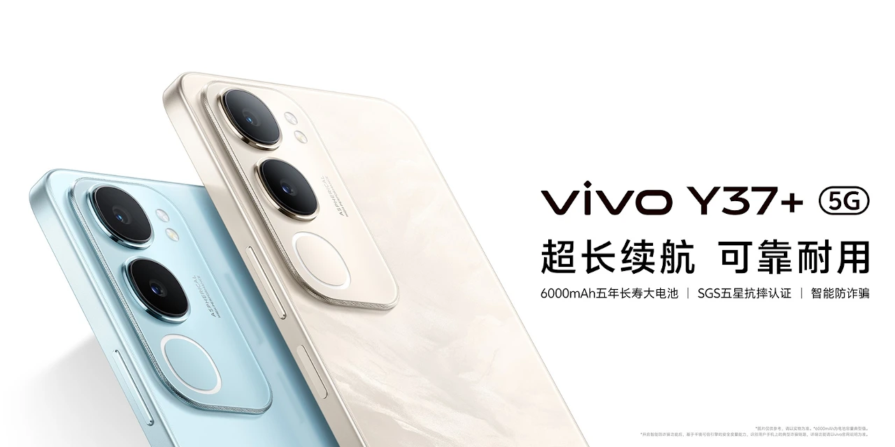vivo Y37+(V2443A)は、Dimensity 6300を搭載した5Gスマートフォンで、6.74インチHD+ディスプレイや6000mAhバッテリーを備えるモデル。2026年3月に中国で発売。