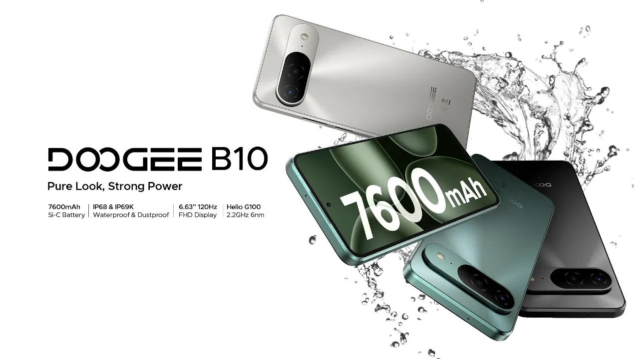 DOOGEE B10は、7600mAh大容量バッテリー搭載のタフネススマートフォン。IP68/IP69Kの防水防塵や耐衝撃設計、120Hzディスプレイを備える。海外で発売、価格は229.99ドル。