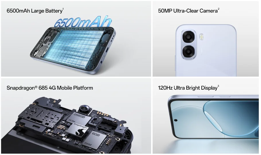 OPPO A6kは、Snapdragon 685搭載の4Gスマートフォン。6500mAh大容量バッテリーや120Hzディスプレイを備える。海外で発売、価格は約190ドル。