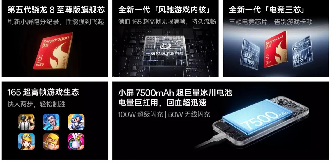 Snapdragon 8 Elite Gen 5採用やコンパクトながら100W急速充電に対応した7500mAh大容量バッテリー、リフレッシュレート165Hzで高解像度なAMOLEDディスプレイ、光学手振れ補正付デュアルカメラなどが特長です。また、重量は194グラムに抑えられています。