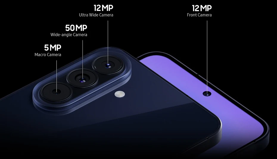 Galaxy A57 5G は、6.7インチFHD+(2340×1080)ディスプレイ、CPUはSamsung Exynos 1680 2.9GHz オクタコア、RAM8GB/12GB、ストレージ容量は128GB/256GB、メインカメラは5000万画素+1200万画素+500万画素トリプルカメラ搭載のミッドレンジクラスのAndroidスマートフォンです。