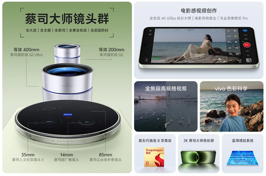 vivo X300 Ultraは、ZEISSレンズと2億画素カメラを搭載したフラッグシップモデル。144Hz対応の6.82インチディスプレイや100W急速充電対応バッテリーを備え、中国で発売、価格は6999CNY(約16.2万円)から。