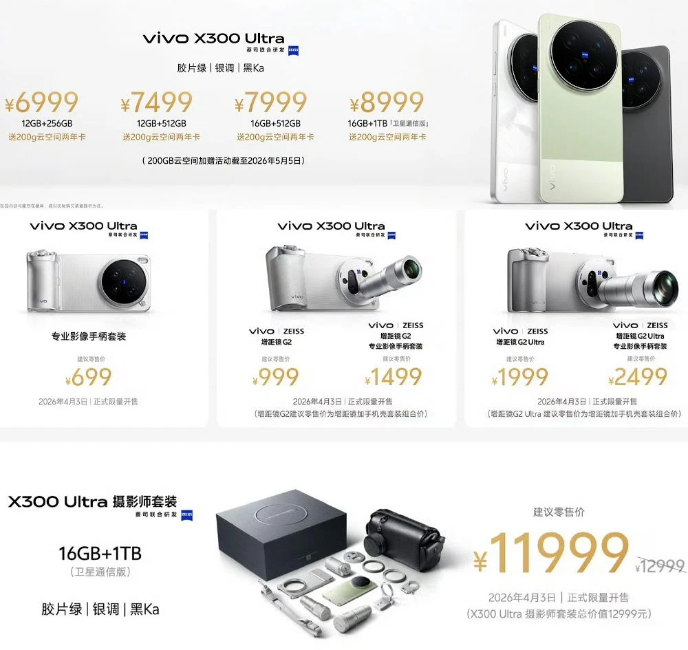 カラーはグリーン、シルバー、ブラックの3色展開。中国で2026年3月に発売、価格はRAM12GB/256GBが6999CNY(約16.2万円)、RAM12GB/512GBが7499CNY(約17.4万円)、RAM16GB/512GBが7999CNY(約18.5万円)、RAM16GB/1TB(衛星通信版)が8999CNY(約20.8万円)、RAM16GB/1TB (衛星通信版 撮影キット)が11999CNY(約27.7万円)となっています。