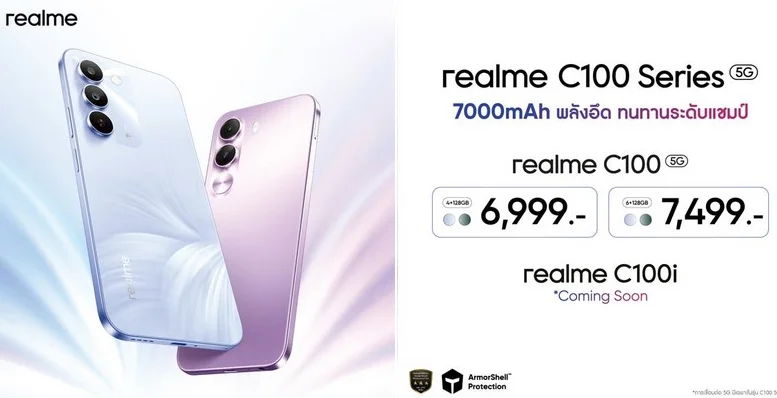 中国のOPPO系メーカーRealMeは、MediaTek Dimensity 6300搭載の5Gスマートフォン「realme C100 5G」をタイで発表しました。