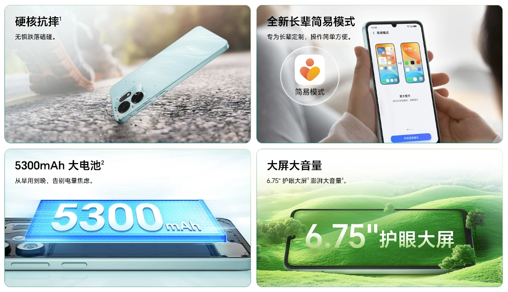 HONOR Changwan 80 (荣耀畅玩80/Play 80) は、6.75インチHD+(1600×720)ディスプレイ、CPUはMediaTek Dimensity 6300 2.4GHz オクタコア、RAM4GB/6GB/8GB、ストレージ容量は128GB/256GB、カメラは1300万画素カメラのミッドロークラスのAndroidスマートフォンとなっています。