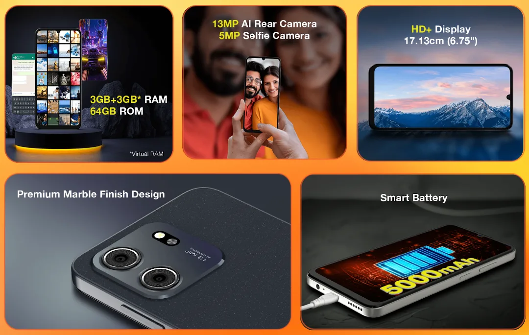 LAVA Yuva Smart 3は、6.75インチHD+(1600×720)ディスプレイ、CPUはUNISOC (Spreadtrum) SC9863A 1.6GHz オクタコア、RAM3GB、ストレージは64GB、メインカメラは1300万画素カメラ搭載のエントリークラスのAndroidスマートフォンです。