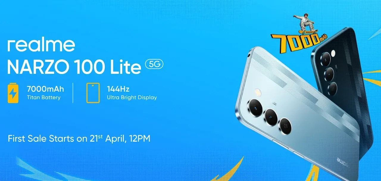 インドで7000mAh大容量バッテリー搭載のAndroidスマートフォン「realme NARZO 100 Lite 5G」発売