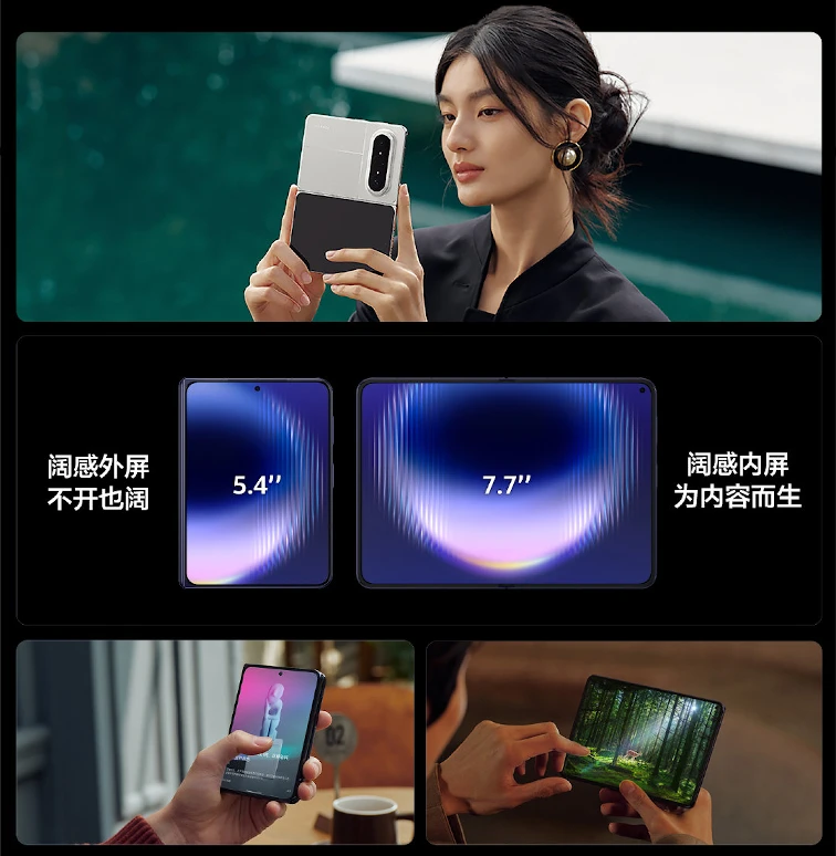 変則的な比率のワイドディスプレイや光学手振れ補正付きクアッドカメラ、スタイラスペン(HUAWEI M-Pen 3 Mini)対応搭載などが特徴の折りたたみスマートフォンです。展開時は7.7インチLTPO OLEDディスプレイ、折りたたみ時にはタッチ操作も可能な5.4型LTPO OLEDディスプレイが利用できます。