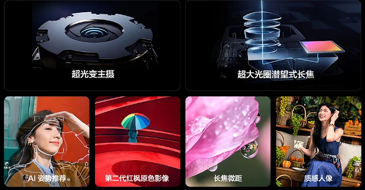 メインカメラ : 5000万画素(メイン 24mm RYYB F1.4-4.0 OIS)+1250万画素(超広角 RYYB 13mm F2.2)+5000万画素(望遠3.5x RYYB 81mm F2.2 OIS)+スペクトルカメラのクアッドカメラ