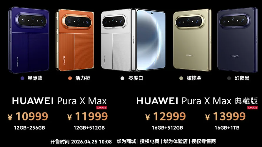 カラーはホワイト、ブラック、オレンジ、ブルー、ゴールドの5色展開。中国で2026年4月に発売、価格はRAM12GB/256GBモデルが10999CNY(約25.7万円)、RAM12GB/512GBモデルが11999CNY(約28.0万円)、RAM16GB/512GBモデル(典藏版)が12999CNY(約30.4万円)、RAM16GB/1TBモデル(典藏版)が13999CNY(約32.7万円)となっています。