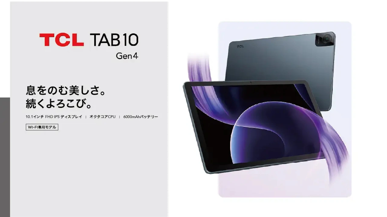 TCL JAPAN ELECTRONICS株式会社は2026年4月22日、日本市場向けに10.1インチディスプレイのエントリータブレット「TCL TAB 10 Gen 4 (8483A)」を発表しました。