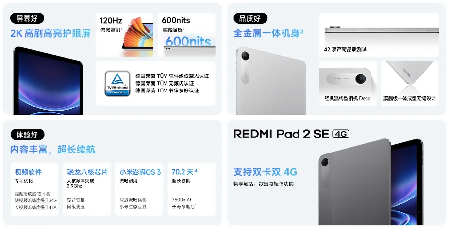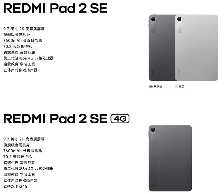 中国のメーカー小米科技(Xiaomi シャオミ)は、中国でSnapdragon 6s 4G Gen 2搭載の9.7インチAndroidタブレット「Xiaomi REDMI Pad 2 SE」を発表しました。