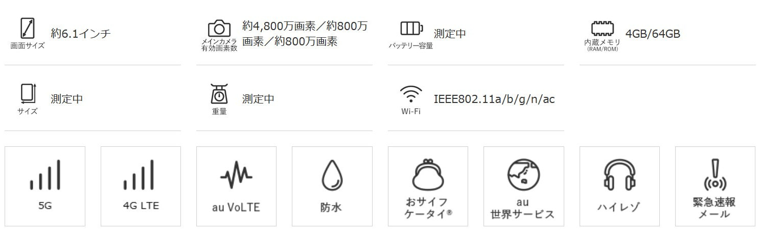 その他 : au Nano IC Card 04(VoLTE) , eSIM , おサイフケータイ , NFC , ハイレゾ